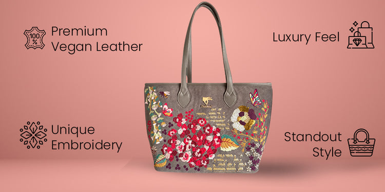 Step into everyday elegance with the Pickaleaf Nature-Inspired Tote Bag, designed for women who value both style and sustainability. Crafted from premium vegan leather and soft suede finish, this tote combines durability with a luxurious feel. The nature-inspired embroidery adds a unique artistic touch, making it a standout accessory for any occasion.