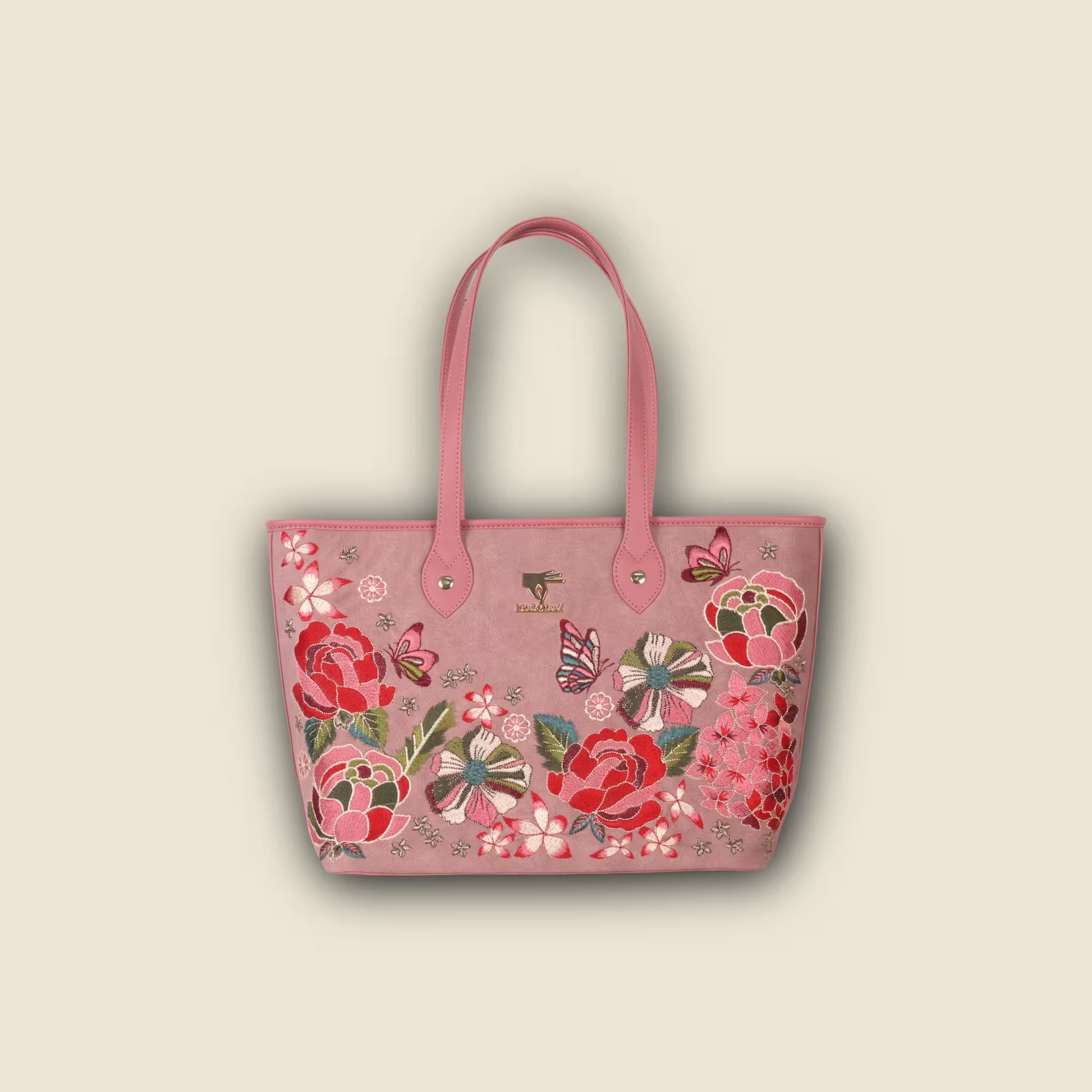 Pink Embroidery Vegan Leather Tote Bag | Work & Casual Use