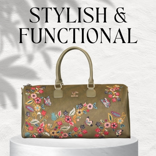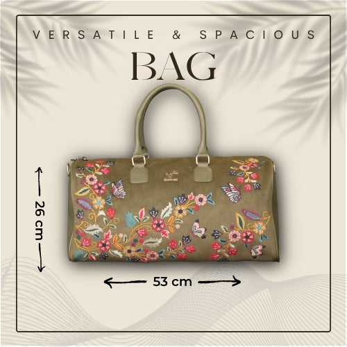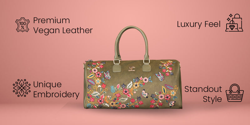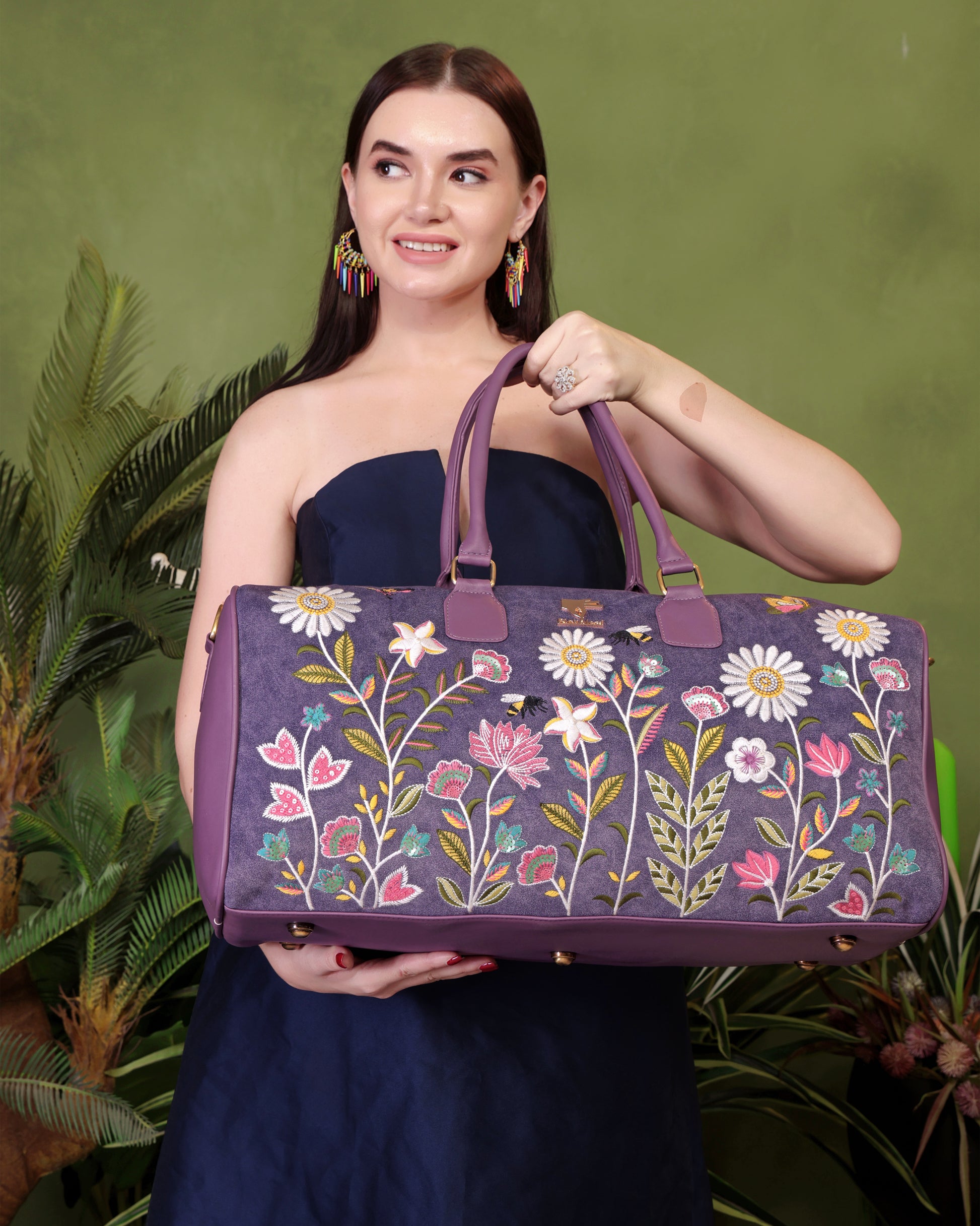 The Daisy Dream Duffel Bag in a vibrant purple shade with charming daisy embroidery is made for women who love accessories that are both stylish and practical. Spacious enough for weekend trips yet chic enough for festive occasions, this duffel brings floral freshness to every journey.
