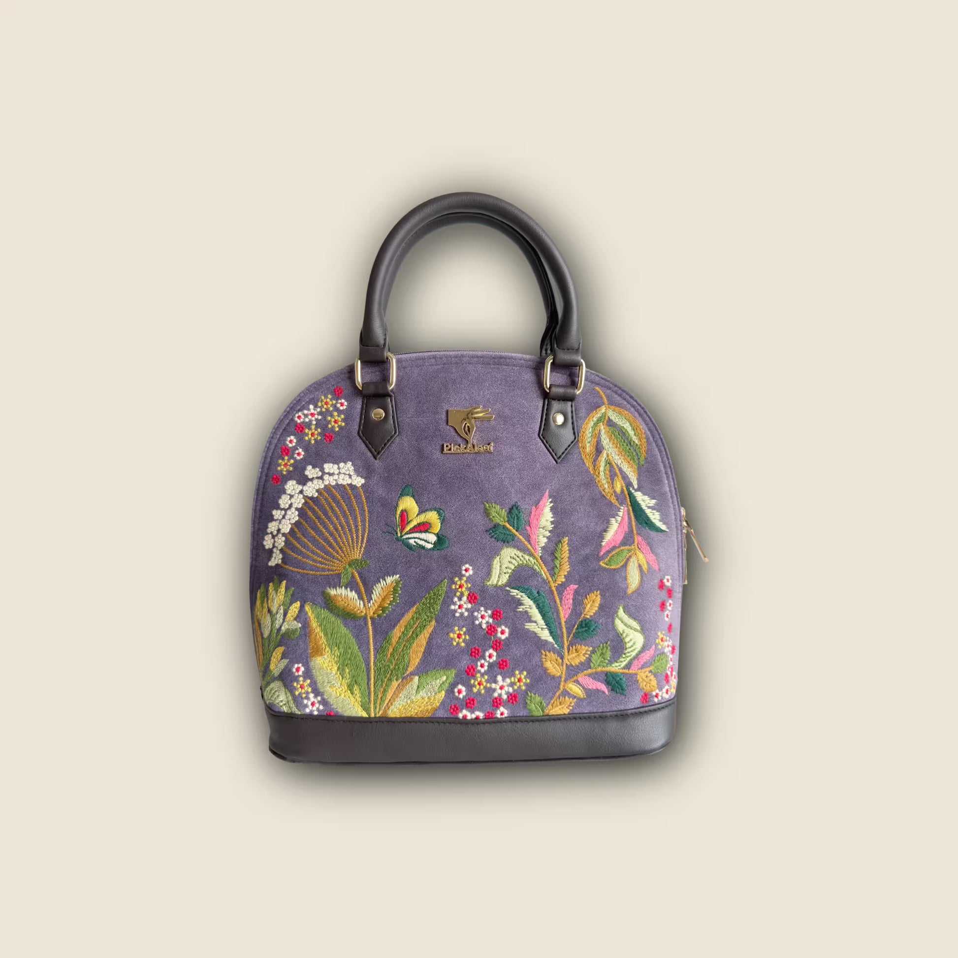 The Violet Valley Handbag in deep purple with fine floral embroidery is more than just an accessory — it’s a statement of confidence and grace. Designed to be compact yet purposeful, this handbag carries your essentials in style, making it an elegant choice for women who love standing out effortlessly.